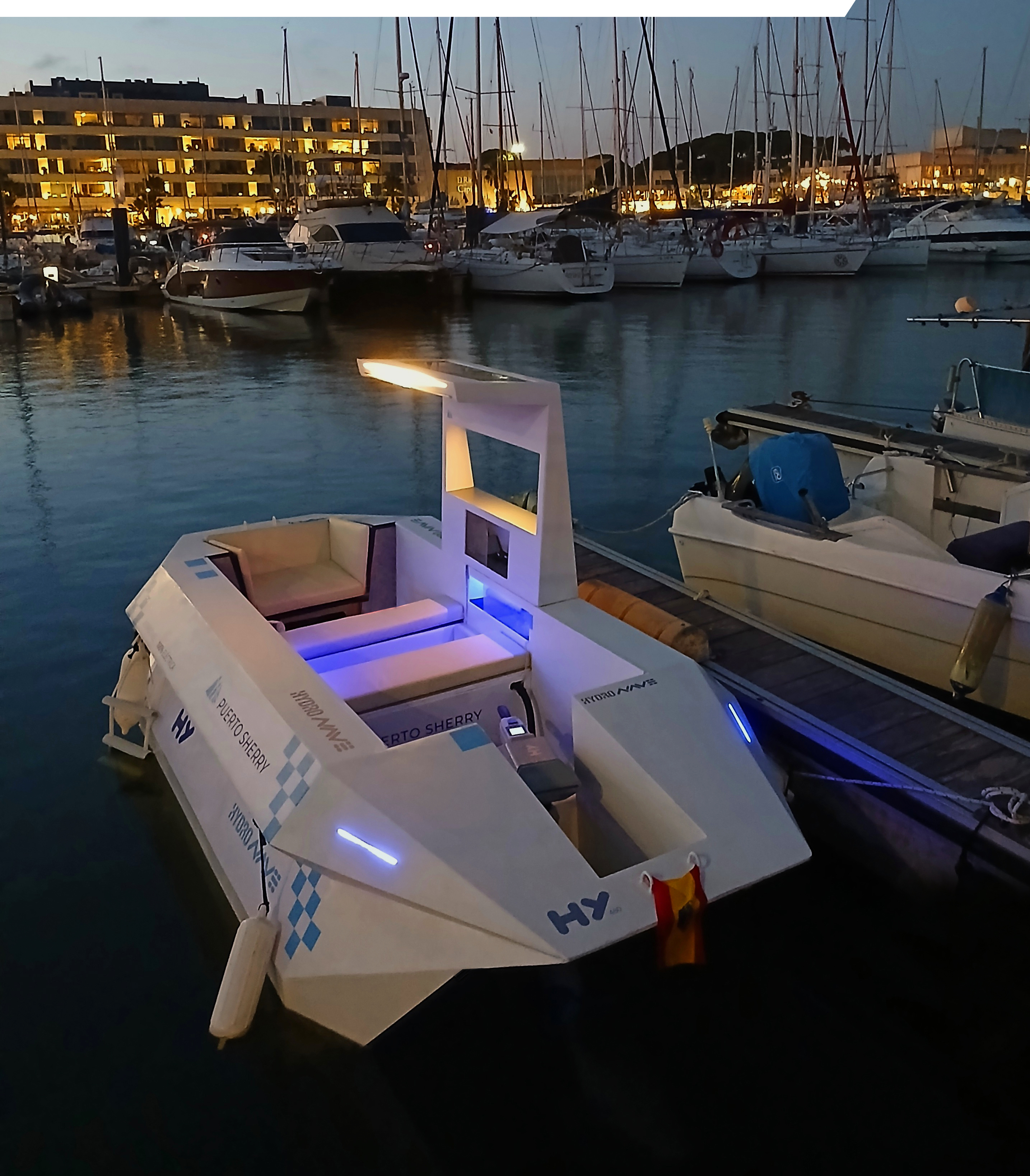 Identificada con el distintivo oficial de astillero HYD, cuenta con certificación CE y todas las homologaciones exigidas por la Marina Mercante y los organismos de Industria en España, garantizando los más altos estándares de calidad, trazabilidad y seguridad.
